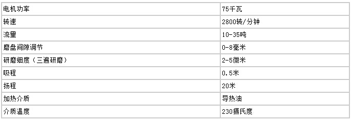 高速剪切均化磨技術(shù)參數(shù)(20T/小時)