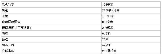高速剪切均化磨技術(shù)參數(shù)(30T/小時(shí))