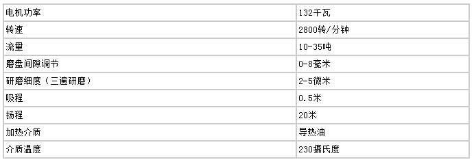 高速剪切均化磨技術(shù)參數(shù)(20T/小時)